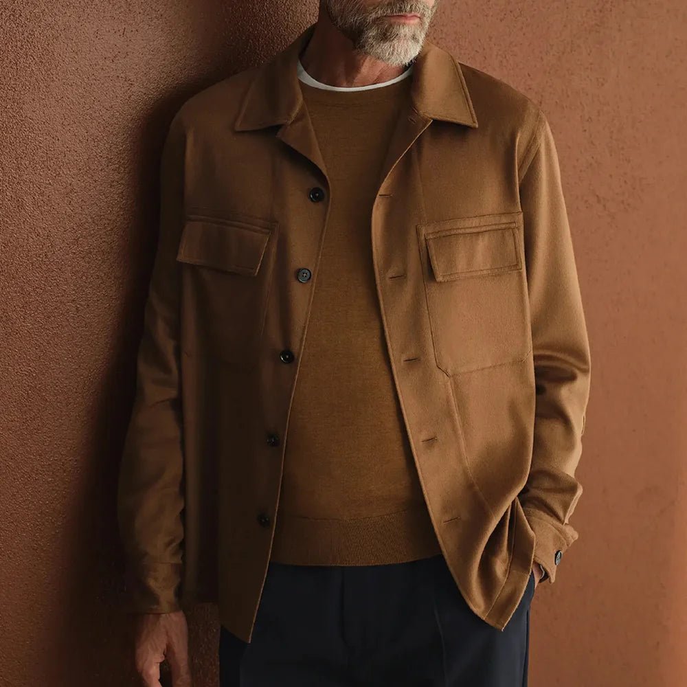 Mens Shirt Collar Cotton Beige Colour Jacket