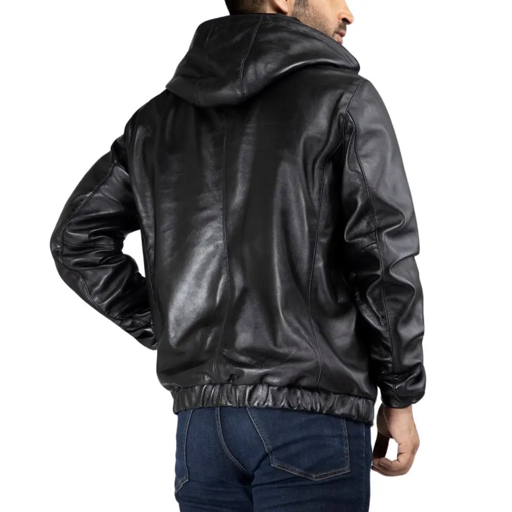 This black mens leather jacket with hood is a timeless statement piece and it’s crafted from premium leather with soft inner and offers a cool look. This hooded bomber jacket mens features bomber style, ribbed cuffs and hemline to create a clean silhouette. The front zipper closure makes it easy to throw on, and multiple pockets keep your essentials handy.