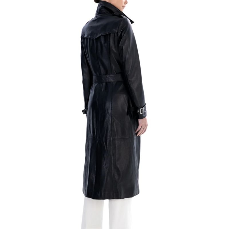 Spring’s Black Leather Lopez Trench Coat With Belt For Womens