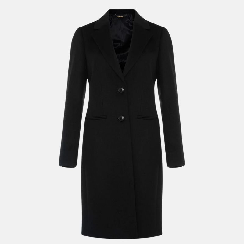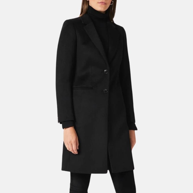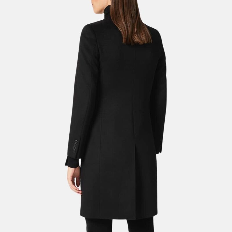 Classic Black Wool Long Coat Womens