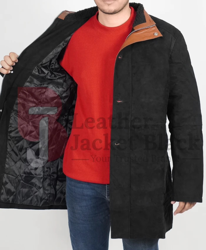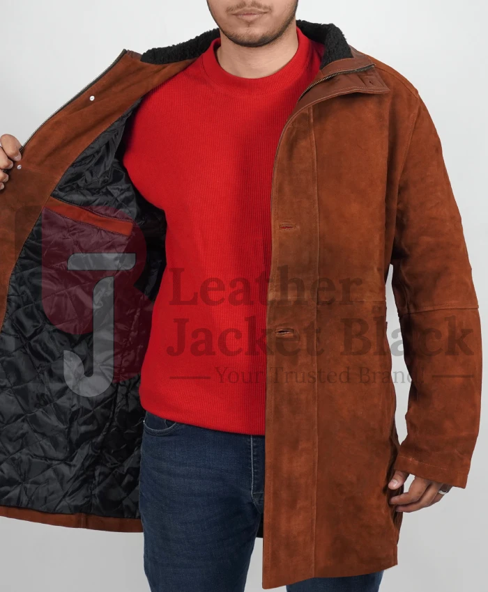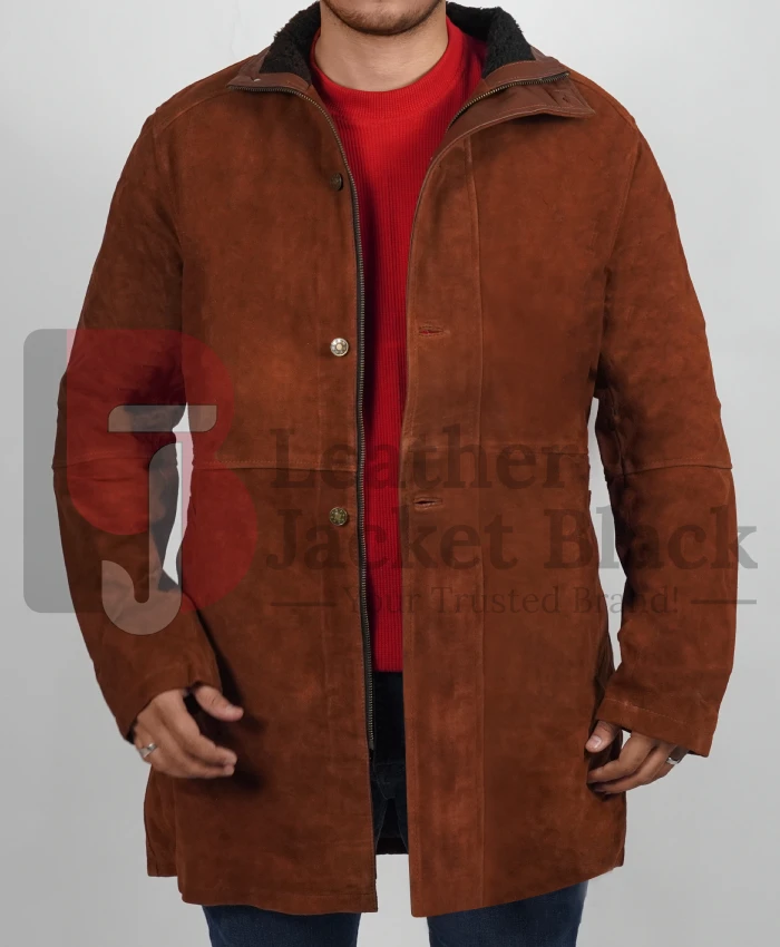 LJB has made the same mens trench coat with the Suede leather and contains the viscose lining interior. Sheriff Walt Coat caters to the two pockets outside and two pockets placed inside the skin. So we design it with the same features as the original coat. Sheriff Coat has a standing collar style that makes it different from the many other trench coat types; it also has full-length sleeves and an open hem cuff design. Moreover, it has a double featured front closure with a zipper and button fastening style.