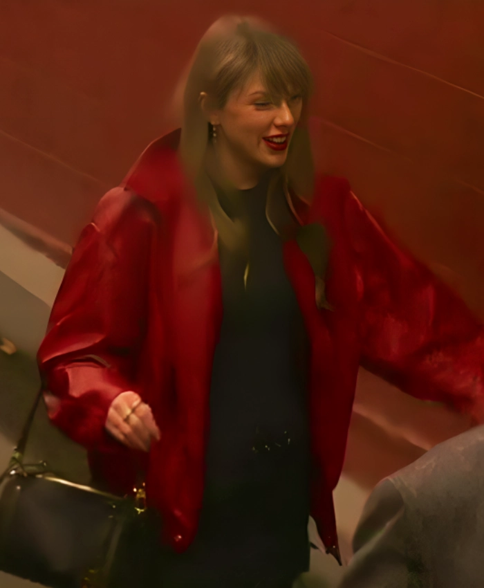 It is difficult for a professional singer like Taylor Swift to take some time off to watch a game of football. However, ever since she formed a relationship with the star Travis Kelece, she has barely missed any game of the KC Chiefs. Whenever she made her appearance, her fans enjoyed her dressing. Let it be her songs or personal life, she cannot stay away from looking bold and pretty, wearing elegant and electrifying outfits. The Chiefs vs Broncos 2025 Taylor Swift Red Leather Bomber Jacket is one of the best examples of her interest in styling