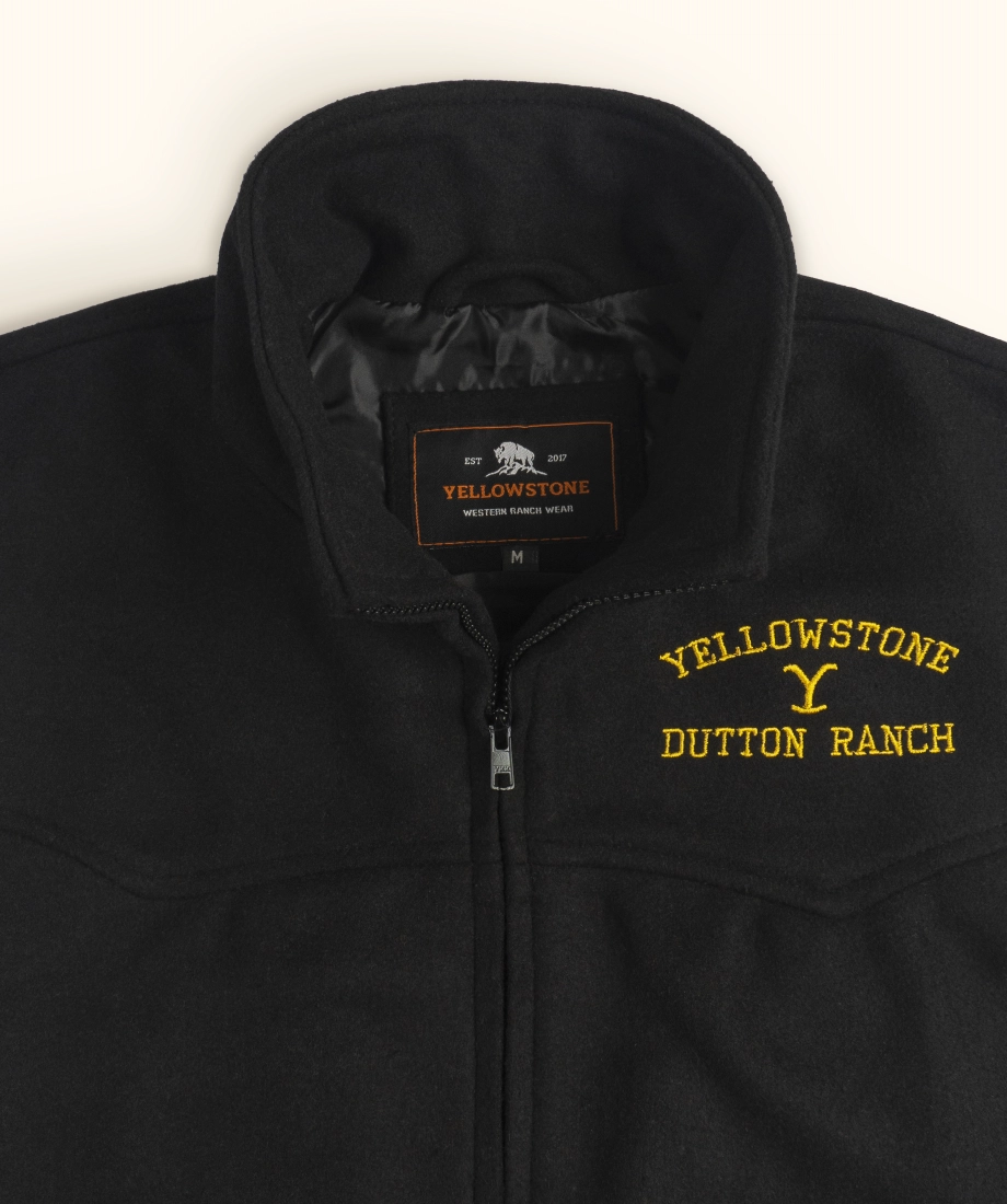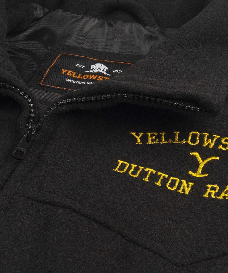 Made with premium quality wool, the Dutton Ranch vest offers unmatched durability and only gets better with time. The black color offers a classy yet rugged style that aligns well with John’s nature, calm but bold. His style is further defined with the standup collar and Yellowstone Dutton Ranch written in yellow at the chest. The zipper front delivers ease and durability with a secure fit.