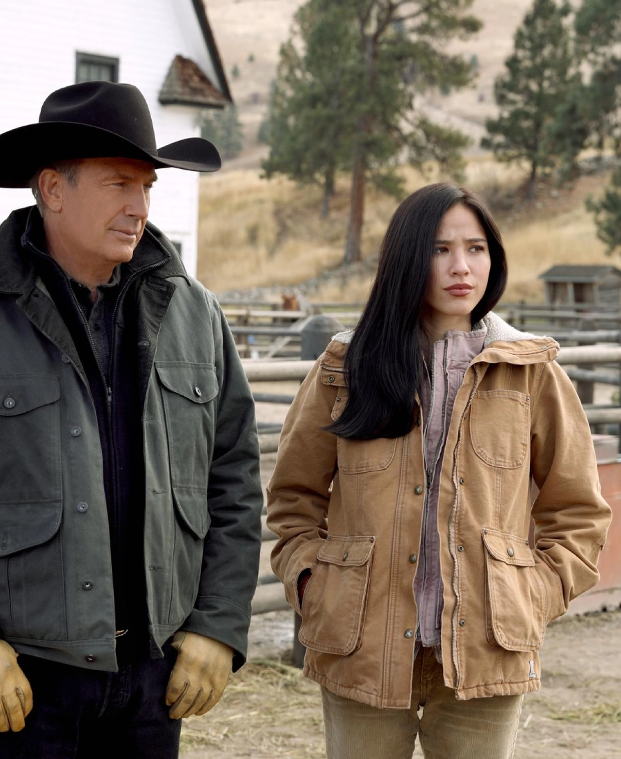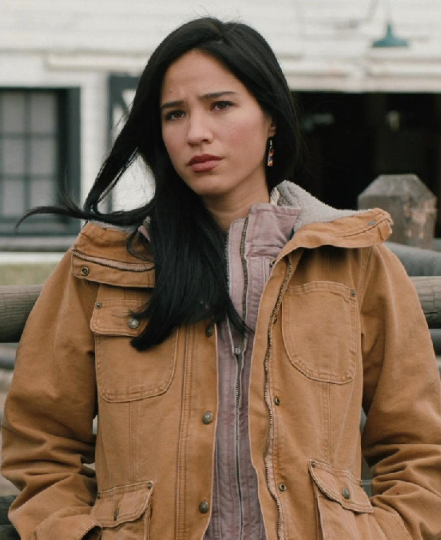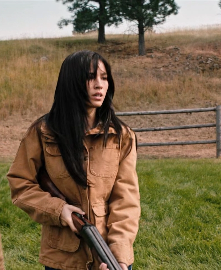 Inside it has the soft shearling lining that keeps you warm whether you are out on a cold evening or just want that cozy ranch feel. The four front flap pockets are actually useful which I personally love because Monica is always on the move in the show. If you already love Yellowstone outfits like the Monica Dutton Suede Leather Coat Yellowstone then trust me this cotton jacket will fit right into your wardrobe too.>
